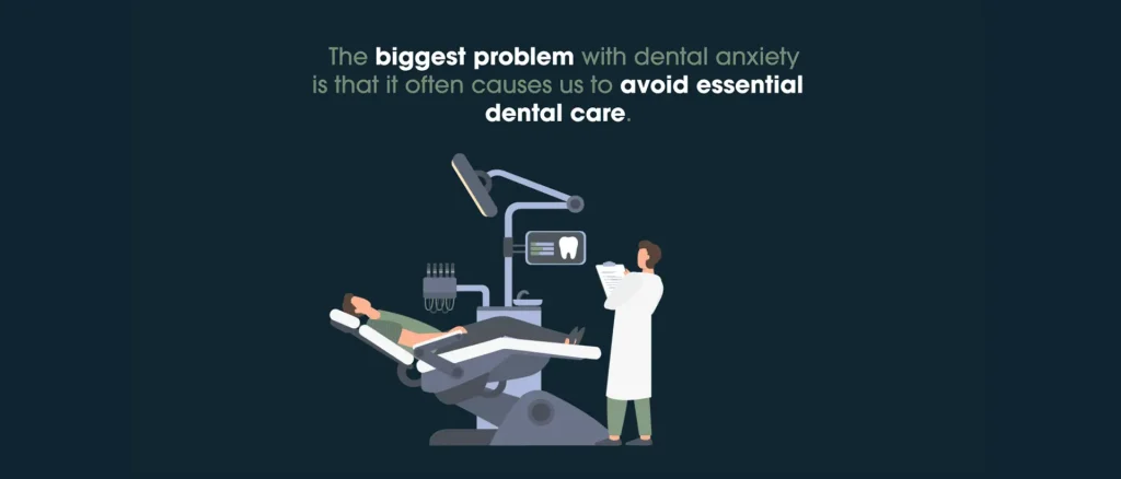 The biggest problem with dental anxiety is that it often causes people to avoid essential dental care. This can become a vicious cycle in which avoiding the dentist increases anxiety, and increasing anxiety leads to greater avoidance of necessary care. The longer someone goes without dental care, the worse his or her oral health will become. The worsening state of dental diseases only increases dental fears and anxieties because of the knowledge that worsening disease requires more extensive treatment, thus heightening dental anxiety even further.